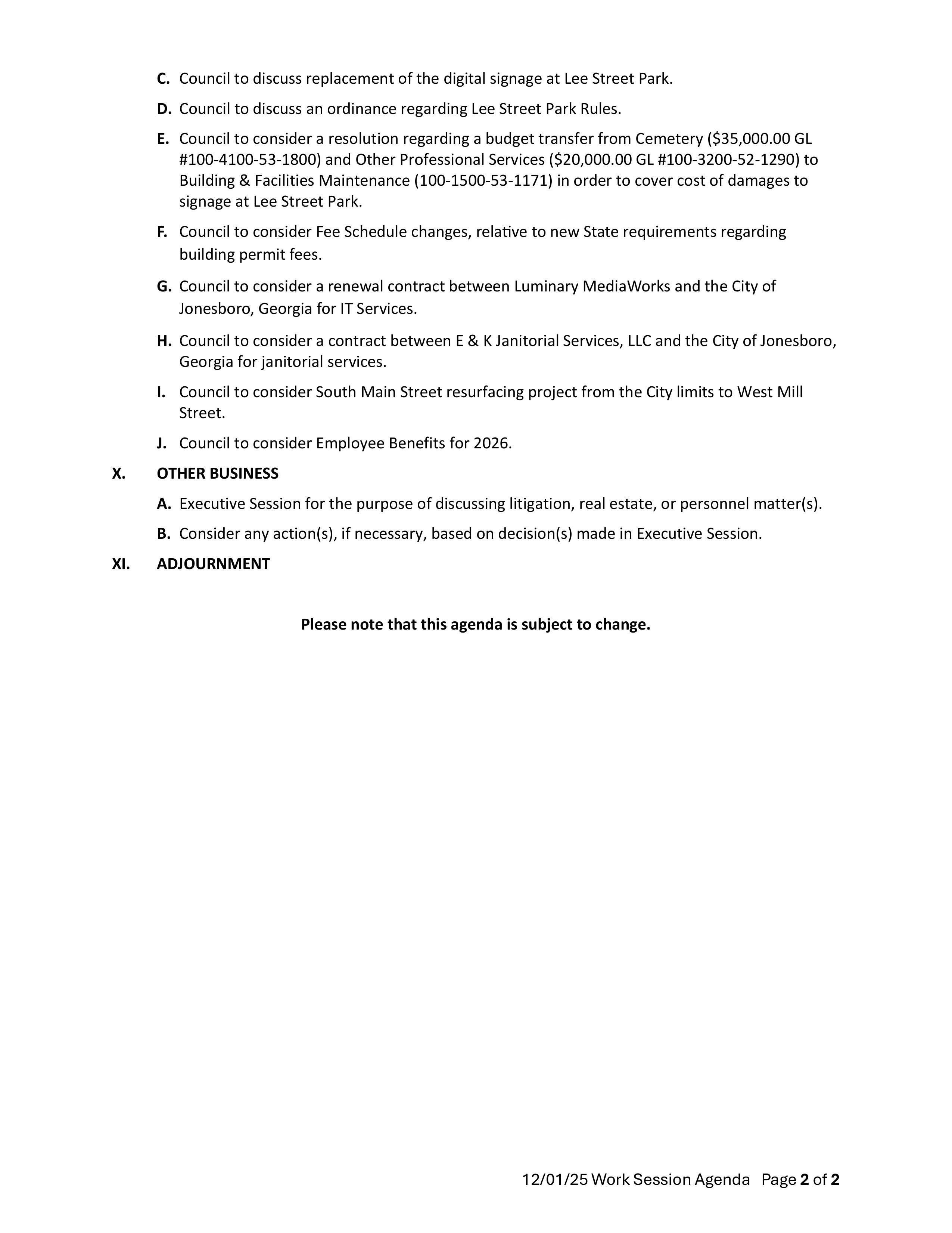 CITY COUNCIL WORK SESSION AGENDA DECEMBER 01, 2025